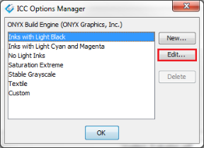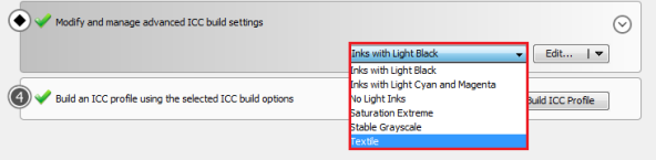 Edit - Clicking this button opens the"ICC Build Options" dialog (Figure 3). Clicking the down arrow opens the “ICC Options Manager” dialog where custom presets can be created. Click [New] to name and configure a custom ICC Build preset (Figure 4).