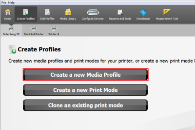 Select [Create a new Media Profile] button from the "Create Profiles" screen to create a new media. This opens the “Create a new Media Profile” Wizard (Figure 1). Follow the instructions in the Wizard to create new media.