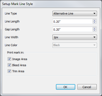 In the “Setup Mark Line Style dialog, the[ Print Mark in:] section determines where the tile marks will print.