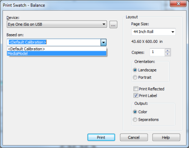 NOTE: When generating your first G7 calibration target, leave the "Based on" selection on [Default Calibration]. When verifying an existing calibration or building an iterative G7 calibration target, select the G7 media model you are verifying or iterating with.