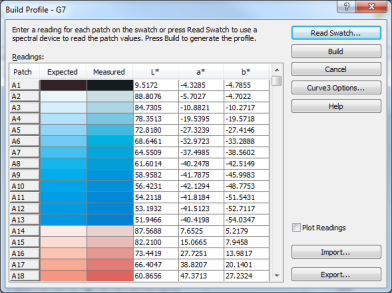 NOTE: For information on how to use Curve3, including how to import readings, analyze the data and generate G7 calibration targets, please refer to Curve3 documentation .