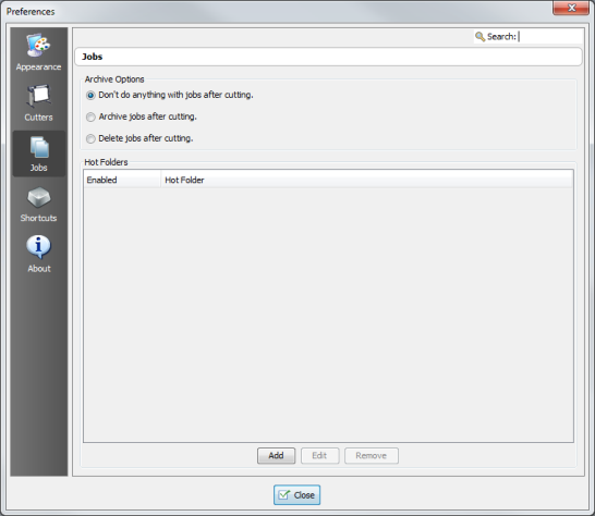 The Jobs options allow you to configure [Archive Options] and [Hot Folders].
