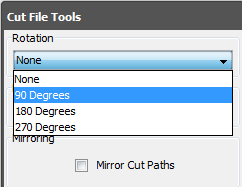 You can rotate a cut file in CUT-Server by clicking on [Rotation] and selecting a rotation degree on the [Cut File Tools].