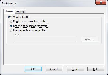 The Display options (Figure 1) controls the ICC Monitor Profile used by Job Editor. Monitor profiles help ensure that the color seen on your screen is the same color produced by your printer.