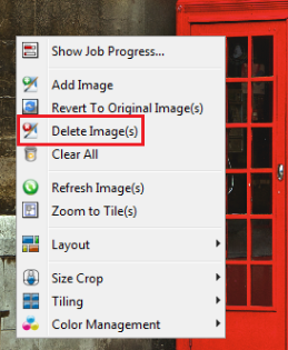 - Right-Click and Delete—Right-click on an image, and select either[ Delete Image(s)] or [Clear All]. [Delete Image(s)] removes only that single image; [Clear All] removes all images.