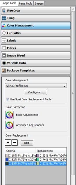 The Color Management option feature in the Image Tools allows you to set ICC Profiles and use Color Correction and Replacement Technology. You can access this tool by clicking Image Tools > Color Management.