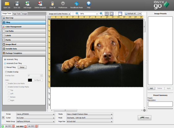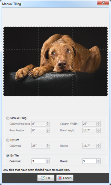 [Automatic Tiling] will automatically create tiles automatically if your image is larger than your media. [Automatic Tiling] is the default setting for Tiles.
