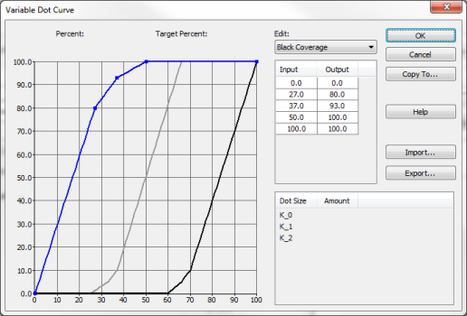 Variable Dot Setup opens “Variable Dot Curve” dialog (Figure 3) providing control over total coverage, rate of coverage, and drop by drop transition (drop ratios)