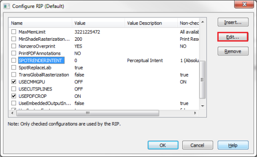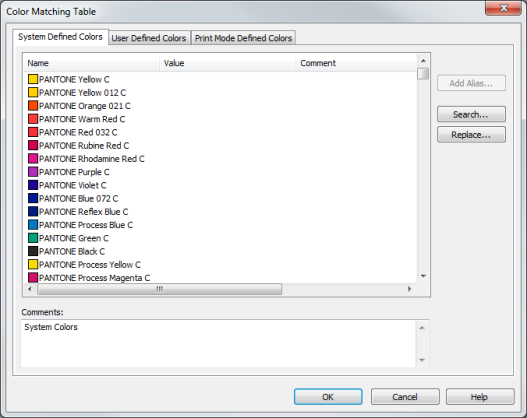 TIP: After ripping your PostScript/PDF file, look at the contents of the RIP Log. This log will contain a list of any named colors in the PostScript/PDF file that do not have a suitable match within RIP-Queue. Once you have a list of named colors without suitable matches, you can use the Replace button in the Color Matching Table to modify the names or use the Add Alias option to add the suitable names. The Replace button is the quickest alternative.