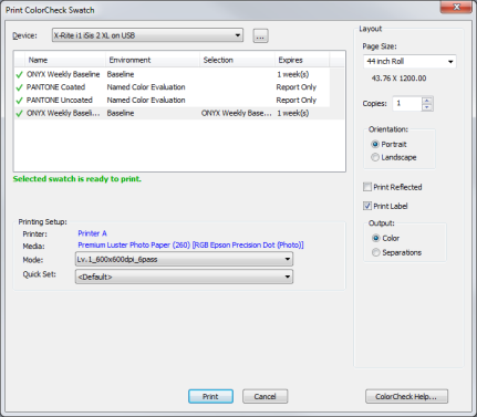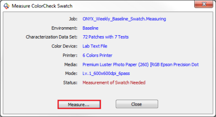 NOTE: It is recommended choose [ONYX Weekly Baseline] as a first step. It will help you to determine going forward if there are issue with printing consistency.