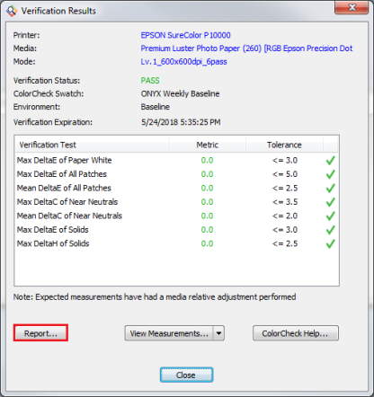 The ColorCheck Report button (