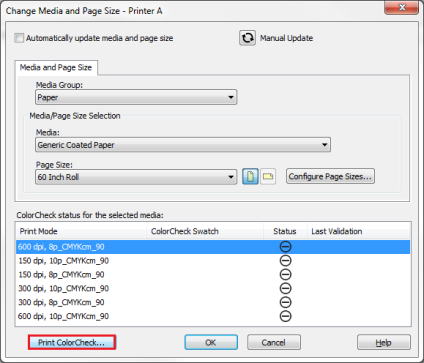 You can print a ColorCheck swatch from either the [Print setup] tab or [ColorCheck] tab.