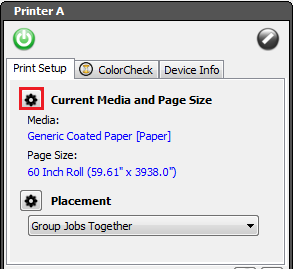 If you need to change media, media group, and page size, you need to use [Print Setup] tab before printing a swatch.
