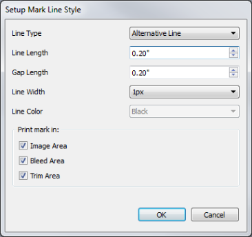 In the “Setup Mark Line Style dialog, the[ Print Mark in:] section determines where the tile marks will print.