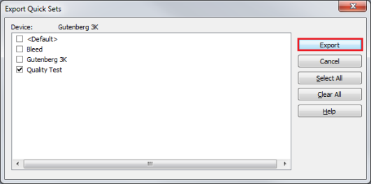 Exporting Quick Sets allows you to take Quick Sets created on your system and export them into other systems.