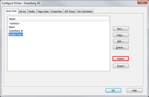 2. In the [Quick Sets] tab, click [Import] button. This opens a browse window (Figure 1).