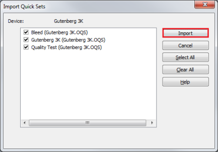 4. In the “Import Quick Sets” dialog, check the boxes of the Quick Set name(s) you want to import, and click [Import] button (Figure 2).