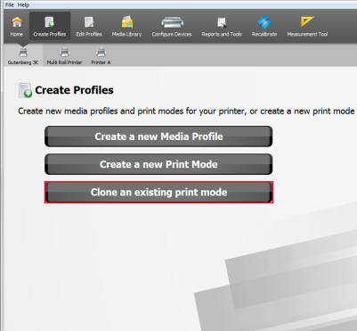 Cloning an existing print mode may be adequate if you are not able to create a new Media Profile, or a customer requests a media you do not normally use.